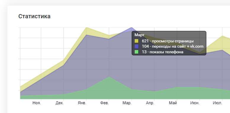 Эти данные позволяют оценить интерес аудитории и эффективность описания компании, фотографий и преимуществ.